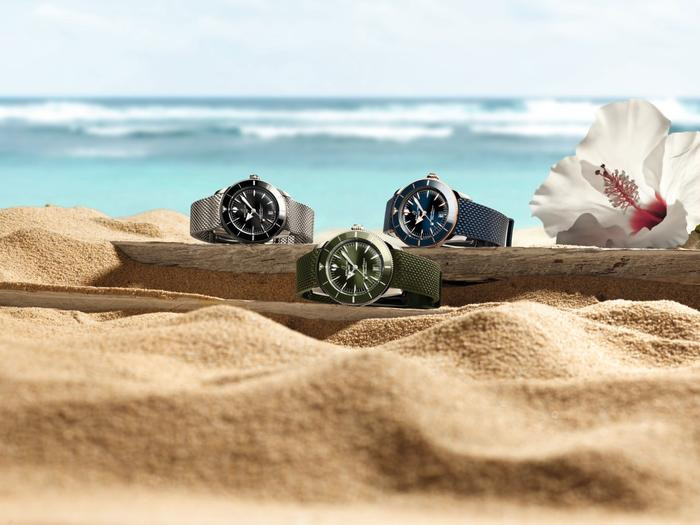 这两款新表延续了海马系列腕表的标志性元素,包括波浪纹边缘表背、旋入式表冠、弧拱形防反光蓝宝石玻璃表镜,以及150米的防水性能。
