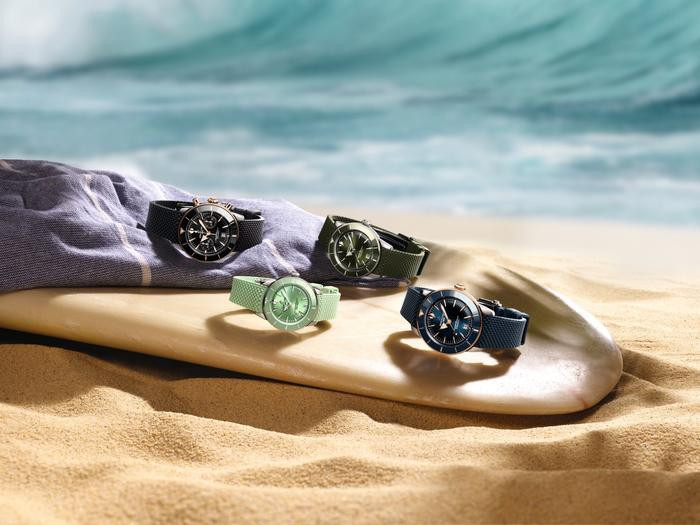 该系列采用黑色、蓝色和绿色三种主色调,并搭配同色系陶瓷镶嵌表圈,陶瓷材料耐刮蹭,经久耐用。该系列腕表有金属编织表链、橡胶编织表带供佩戴者选择,搭配折叠式表扣,视觉上一体无缝。